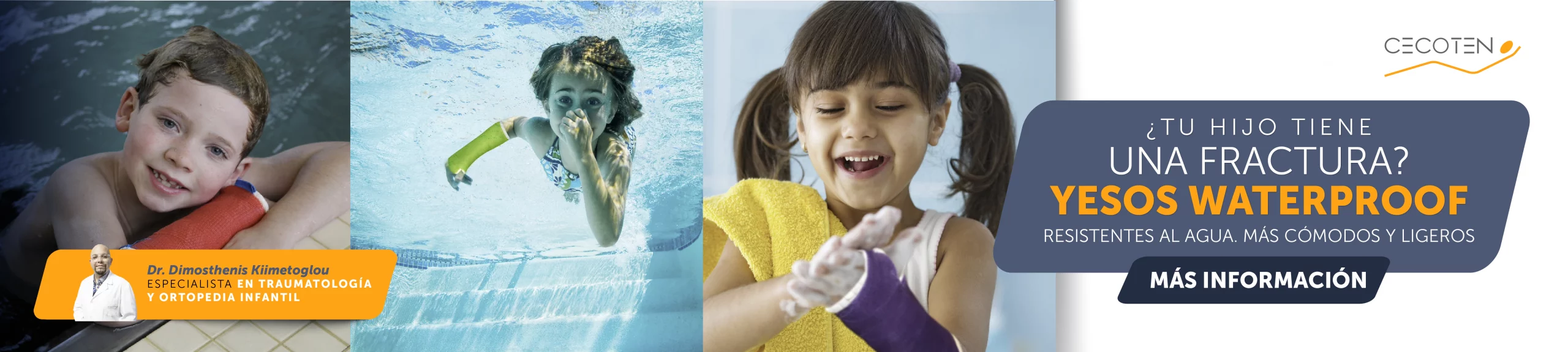 En CECOTEN, hemos incorporado la última tecnología en Traumatología Infantil: los yesos waterproof (resistentes al agua). Una alternativa moderna que permite mojar la inmovilización sin comprometer la correcta curación del hueso. Nuestro objetivo es acompañar su recuperación minimizando el impacto en su vida y respetando al máximo su desarrollo.