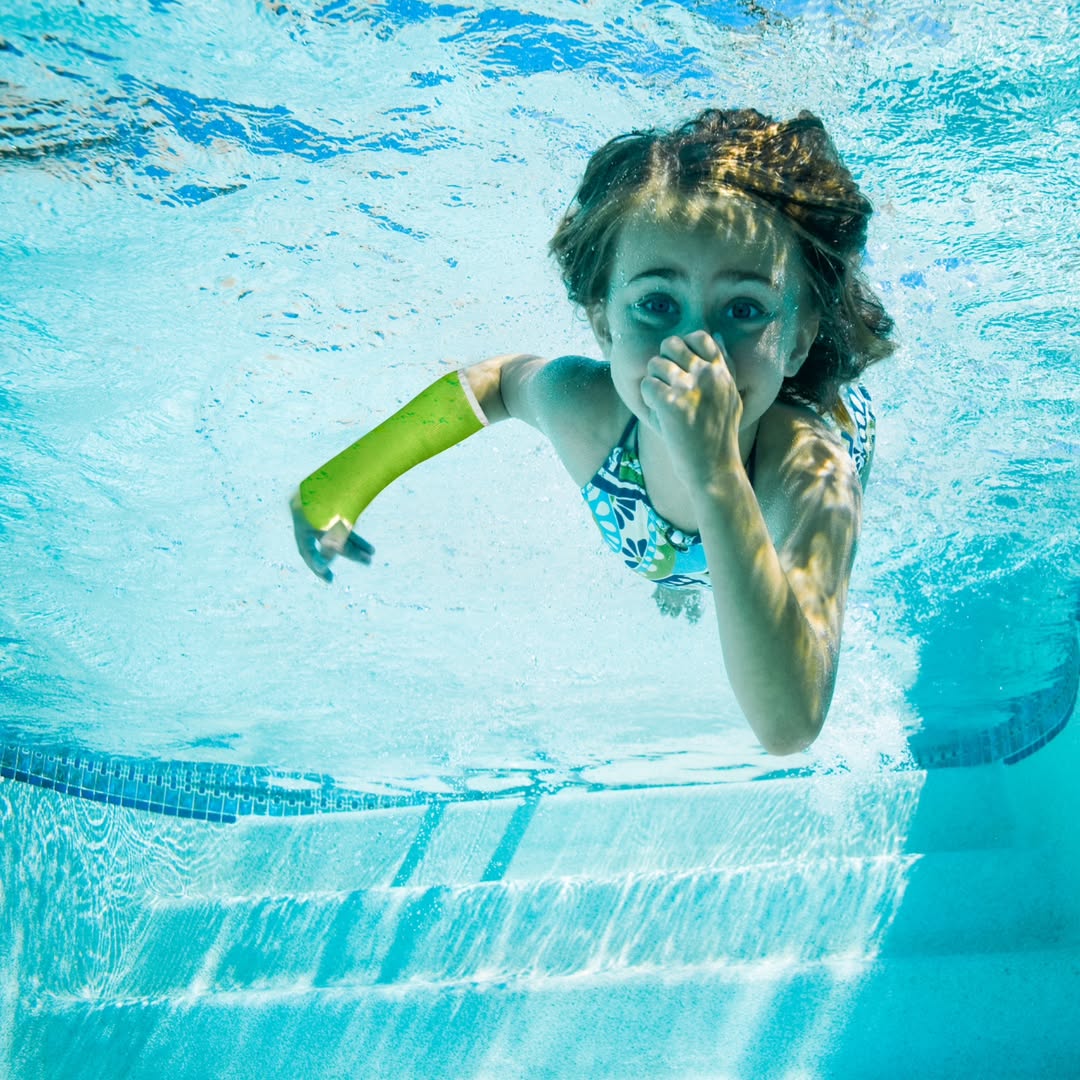 ¿Realmente mi hijo se puede bañar en la piscina o en el mar con este yeso?